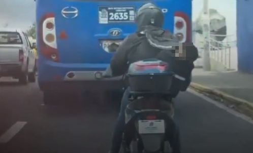 Según las imágenes difundidas, el niño se encontraba dormido en el bolso y el conductor ascendió por la vía contigua a una universidad de la ciudad, cerca del intercambiador de la Mariana de Jesús.