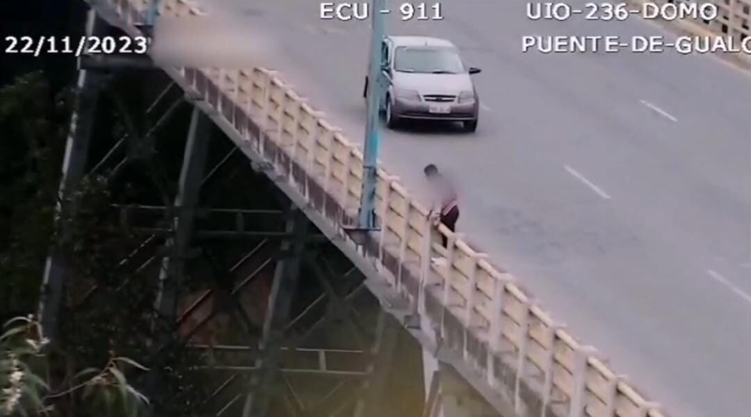 Un grupo de personas que abordaban la av. Simón Bolívar, sobre el puente de Gualo, en el norte de Quito, evitó que una mujer se lanzara desde la baranda metálica de dicho paso.