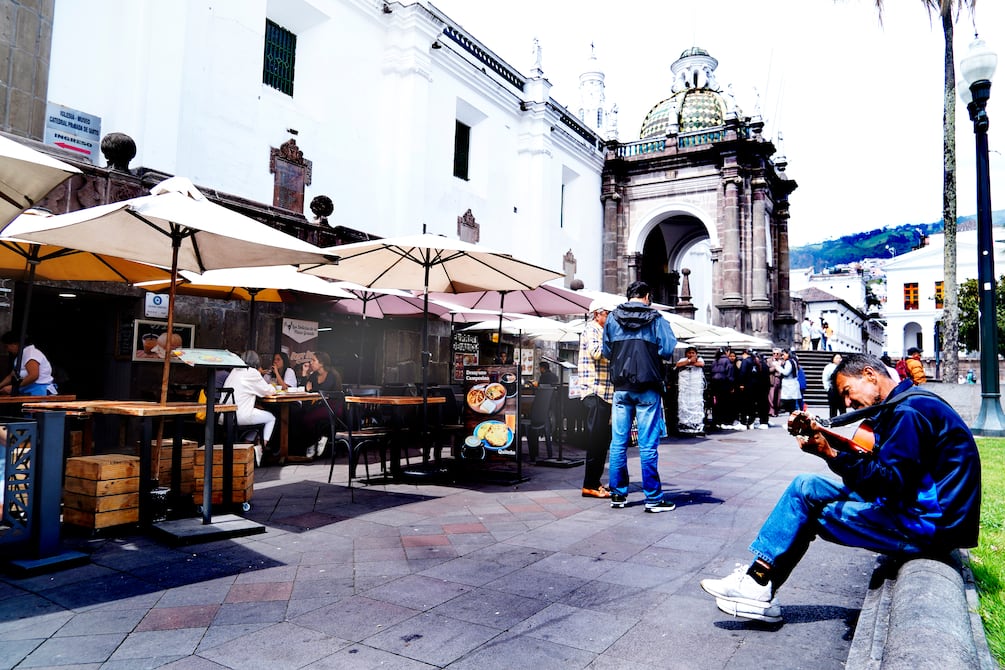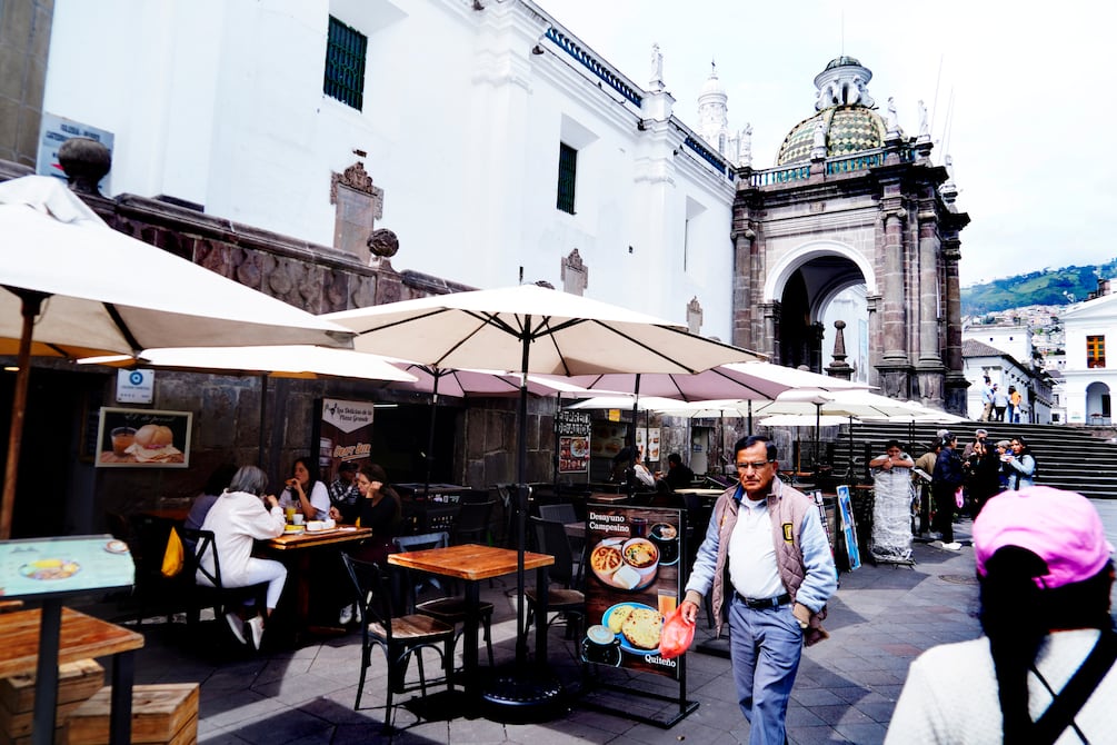 Mientras tanto, turistas extranjeros se sentaban en las mesas, pedían diversas opciones culinarias y observaban a las palomas y los adultos mayores que se congregan a un costado del Palacio de Carondelet y del Municipio de Quito.