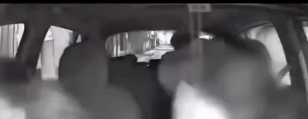 El conductor, en el afán de salvar su vida, sostiene el brazo del individuo sentado en la parte posterior del carro. El de adelante abandona el vehículo, mientras la víctima intenta atrapar al segundo hombre.