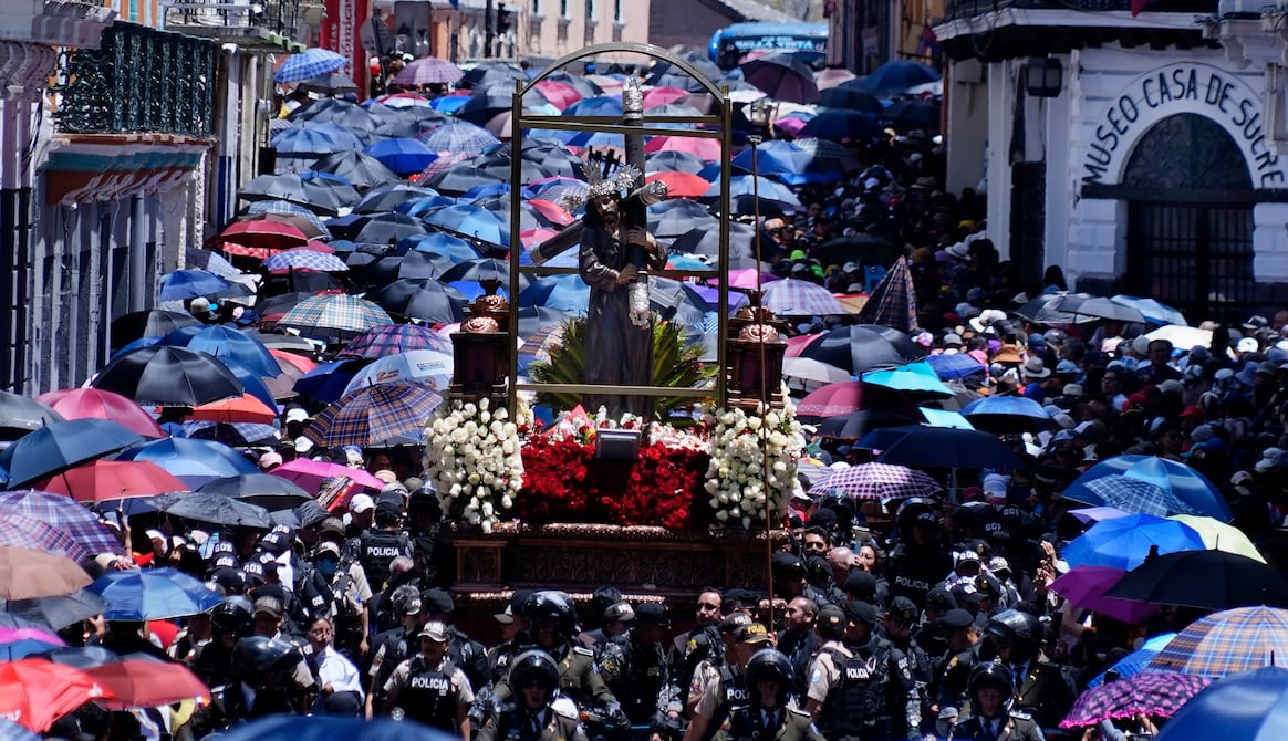 A pesar del sol, el ambiente no pasaba desapercibido durante la mañana de este viernes, 18 de abril. Las calles de la plaza San Francisco estaban llenas de cruces de diferentes tamaños y personas que caminaban con el disfraz de los denominados cucuruchos.