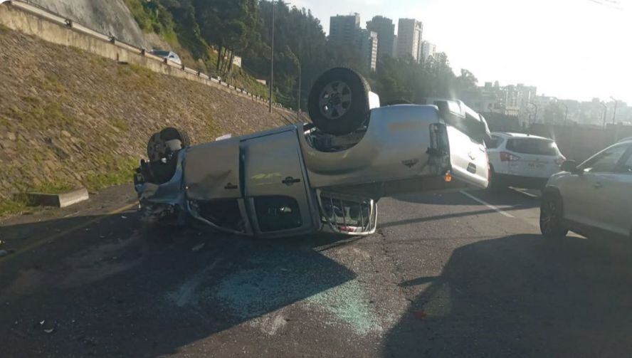 Cerca de las 07:30 de este martes 30 de mayo, un accidente se produjo en la av. Mariscal Sucre, en el norte de Quito. Una camioneta doble cabina se volcó y produjo el cierre de dos carriles en esta arteria considerada de alta velocidad en la capital.
