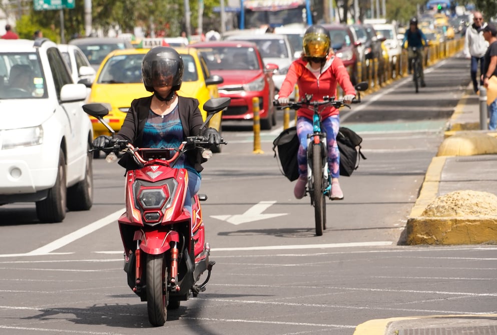 Carlos Andrade usa una moto eléctrica desde hace más de un año en Quito. La utiliza para trabajar en una plataforma de transporte. Por su seguridad y la de los peatones, sostuvo que es adecuada la utilización de un casco.