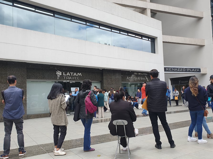Jacqueline Vega llegó a las 09:00 de este martes, 3 de octubre, a los exteriores de un edificio del norte de Quito donde funcionan las oficinas de Latam y hasta las 11:25 señaló que no avanzaba la fila.