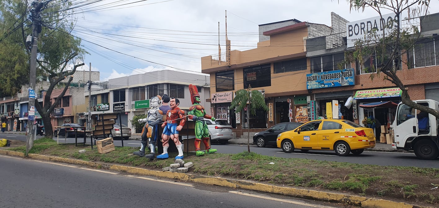 Patricio Sandoval y su nieto, de 9 años, miraban atentamente los años viejos colocados en uno de los parqueaderos del parque La Carolina, en el norte de Quito.