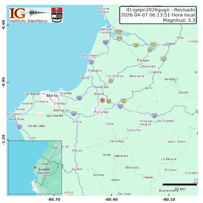 Según el Instituto Geofísico, el evento ocurrió a las 06:13, con una profundidad de 17 kilómetros. El epicentro se ubicó a 6,8 kilómetros de Portoviejo.