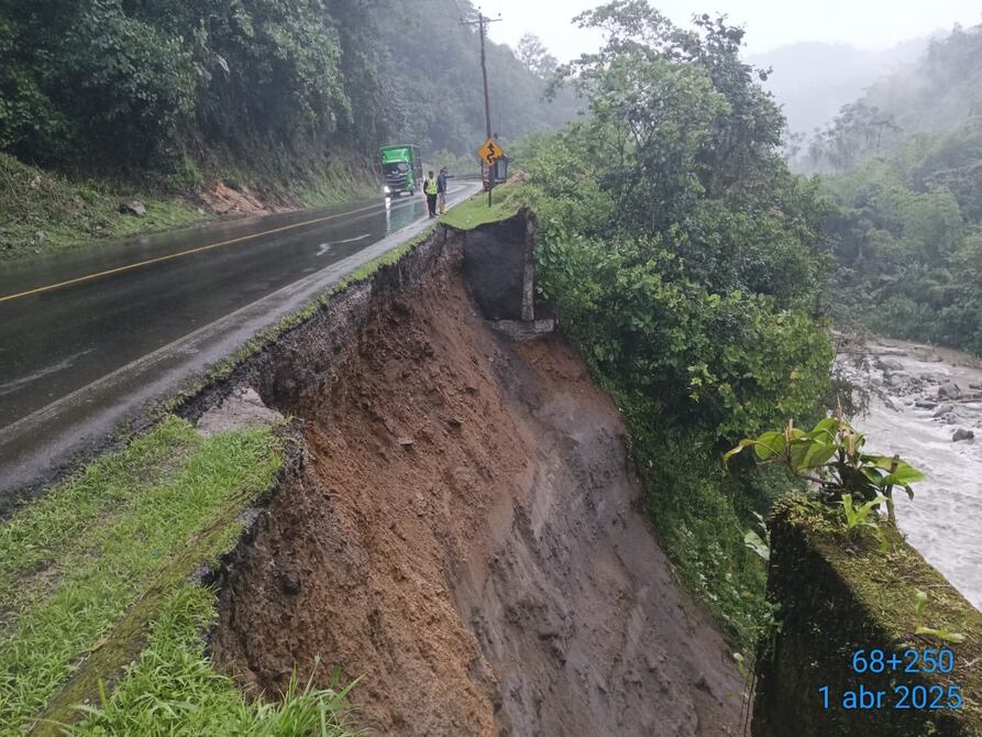 La vía Aloág-Santo Domingo resultó con una afectada la tarde de este martes, 1 de abril.