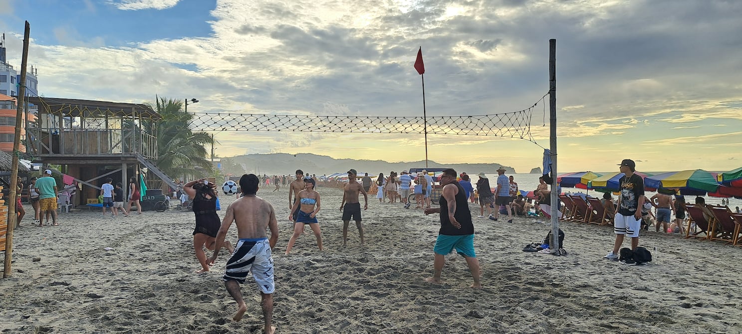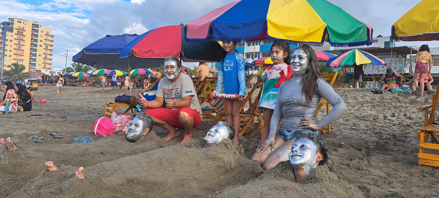 La búsqueda de metales con detector en la arena, los partidos de vóley playero, bañistas con tablas de surf y grupos de jóvenes con los rostros pintados de color plateado fueron parte del ambiente festivo en los balnearios esmeraldeños.