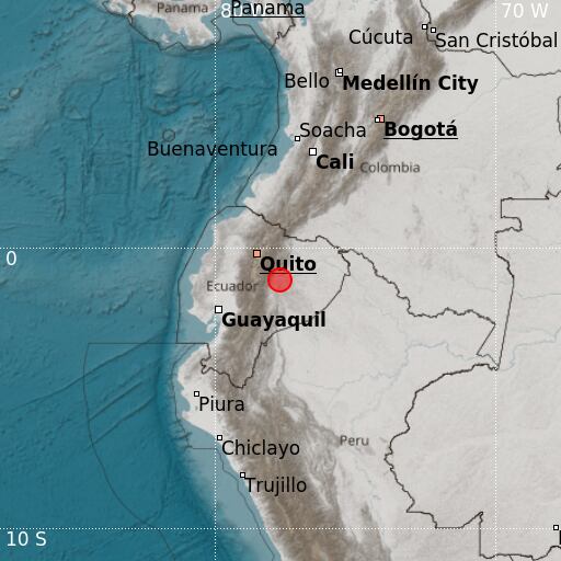 A las 02:25 de este domingo, un sismo de magnitud 5,3 se reportó a 30,45 km de Tena, a una profundidad de 7 kilómetros.