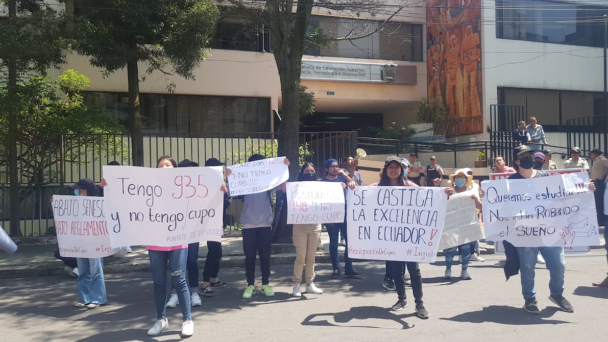 Por cuarto día consecutivo hubo un plantón en los exteriores de la Secretaría de Educación Superior, Ciencia, Tecnología e Innovación (Senescyt) por un cupo para las universidades.
