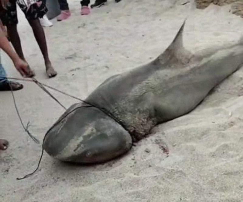 Un tiburón de al menos tres metros generó susto la mañana de este miércoles en la playa de Crucita, cantón Portoviejo, tras quedar atrapado en la arena.