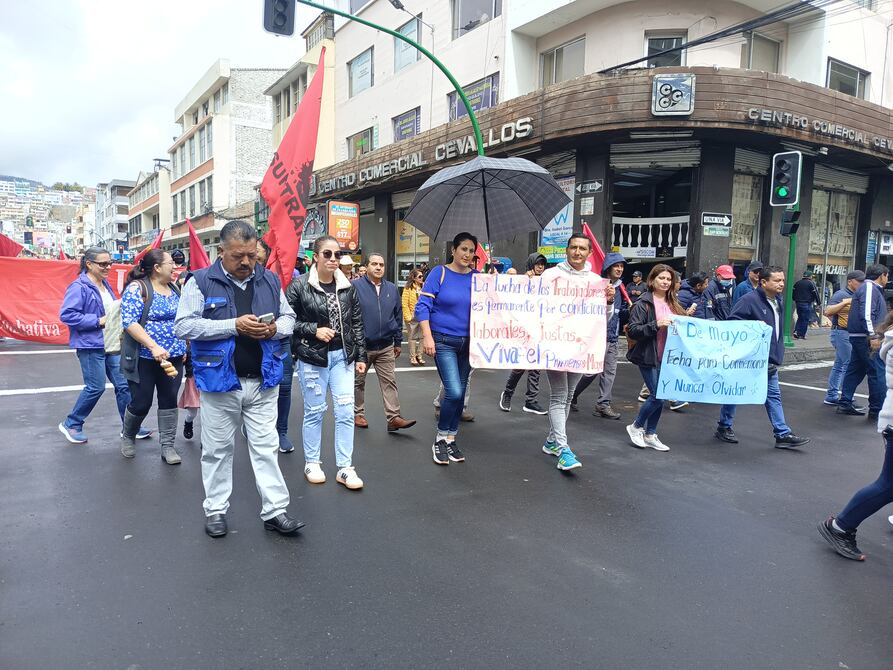 En la mañana de este jueves el desfile recorrió las principales calles de Ambato con gritos y pancartas en defensa de los trabajadores de la ciudad y el país.