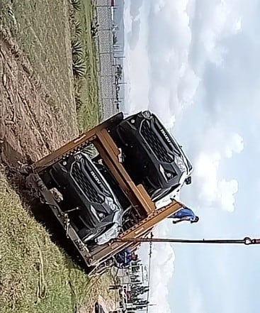 Tres grúas acudieron a la zona para mover el cabezal y la plataforma que trasladaba los carros, según reportes ciudadanos.