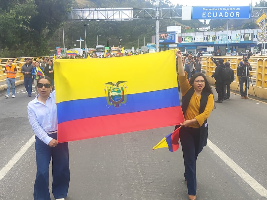 En su recorrido, los participantes exhortaron a los mandatarios Daniel Noboa y Gustavo Petro, ambos cumpliendo agenda oficial en el extranjero, revisen la imposición del 30% a los aranceles a las importaciones.