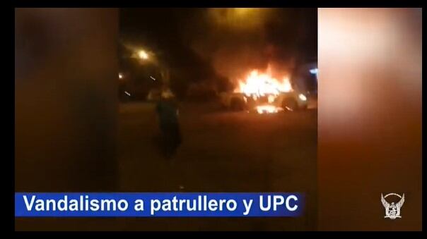 En imágenes se observó la quema del patrullero y la incursión de sucursal bancaria.