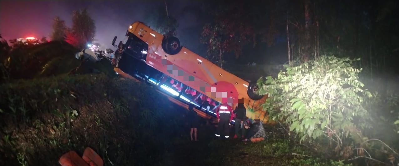 Un bus se accidentó este jueves 28 de agosto en el sector de Pedro Vicente Maldonado, específicamente en el kilómetro 112 de la vía Calacalí-La Independencia.