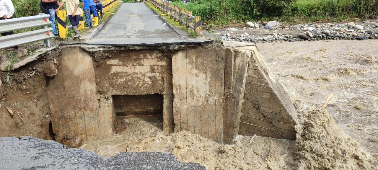 Viviendas quedaron anegadas por la creciente de río. Parte de puente colapsó.