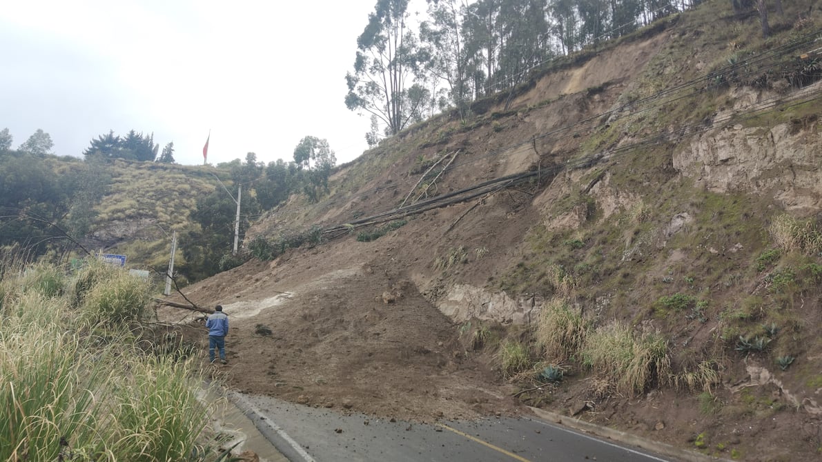 Deslizamiento tapó vía de Ambato a Quisapincha, estudiantes y trabajadores hicieron trasbordo al cruzar a pie por la zona para dirigirse a cumplir actividades