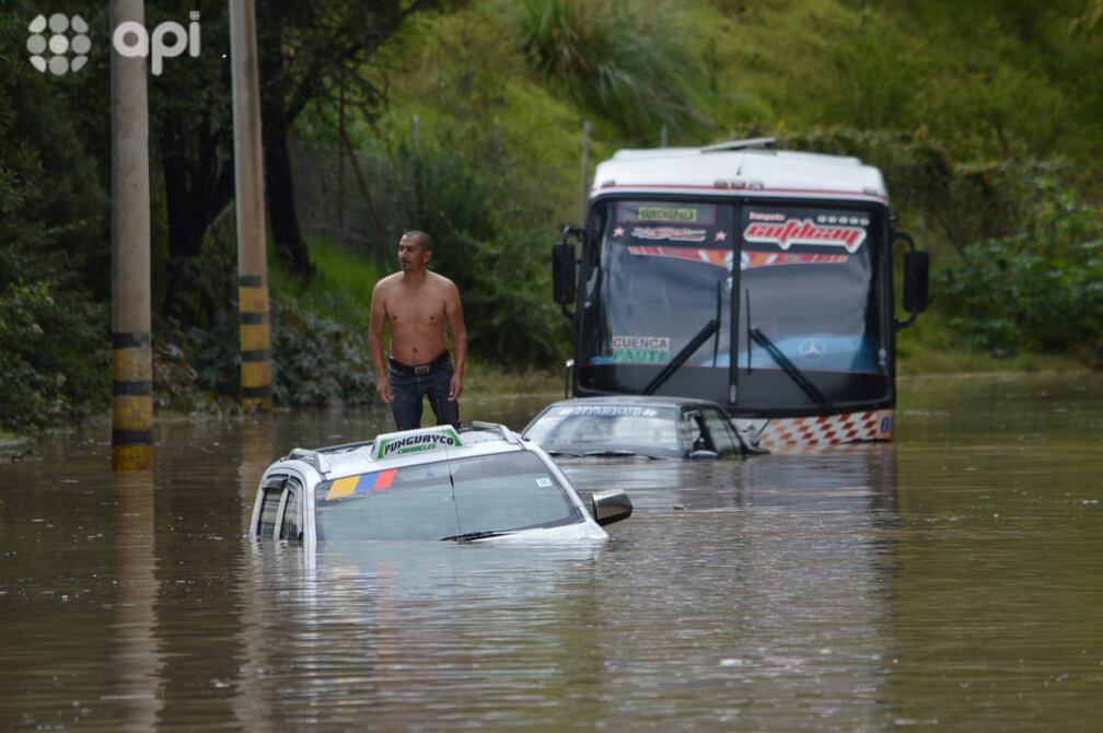 En las primeras horas del martes, un bus de transporte intercantonal quedó atrapado en las aguas del río Cuenca y los bomberos rescataron a 20 pasajeros.