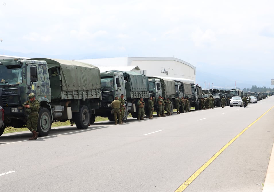 A las 11:10 de este lunes, 13 de octubre, se dio la salida desde la zona de Tababela. Un contingente de 1.000 uniformados acompaña caravana.