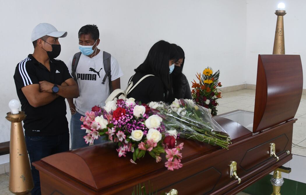 Afuera del velorio, Patricio Minango llora la muerte de su madre, Rosa Guamán, y de su sobrina Johanna Iza. Adentro, los vecinos y familiares se acercan a los ataúdes y se despiden.