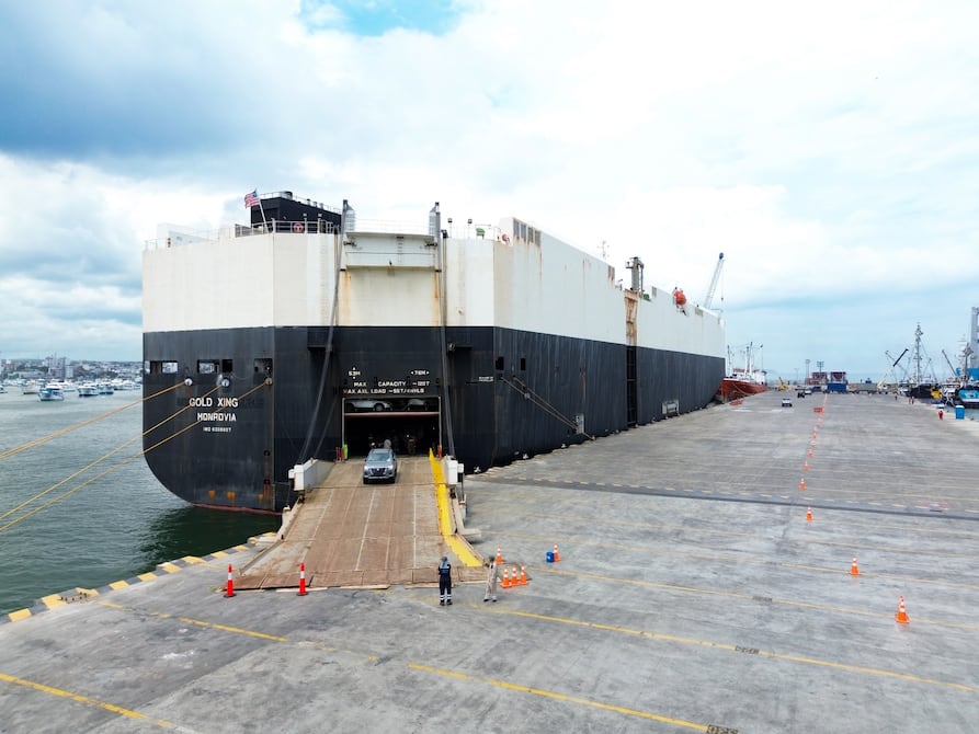 El puerto de Manta recibió este jueves, 12 de marzo, al MV Gold Xing, un buque tipo car carrier que arribó con 407 vehículos de importación procedentes del puerto de Lázaro Cárdenas, en México.