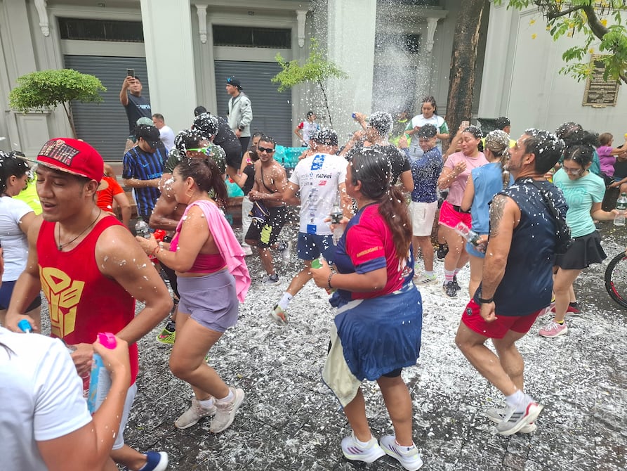 Las espumas de carnaval volvieron a salir y niños y adultos festejamos entre risas y danza bajo el cielo guayaquileño. De hecho, un vendedor ambulante aprovechó la algarabía y, mientras vendía (“Lleve su carioca”), era sorprendido con espuma. Él también lo disfrutó al máximo.