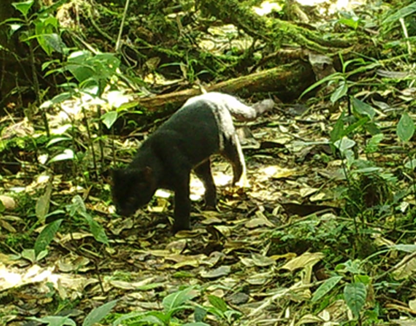 El uso de cámaras trampa representa un método no invasivo de registrar patrones de comportamiento o coloraciones inusuales en ciertas especies. Un grupo de científicos las instaló en el corredor de conectividad Llanganates-Sangay, que conecta ambos parques nacionales, donde inventariaron 57 casos de animales con coloraciones distintas. Es el trabajo de doce años sacando el material de cámaras trampa.