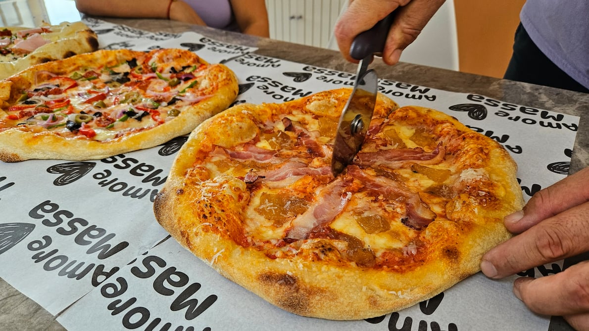 Poseen siete pizzas clásicas: margherita, amore tropical, amore carne, simplemente jamón, pizza del huerto, pepperoni, pizza lovers. Y las de autor: bianca olivia, hot honey pizza, 4 quesos, butter garlic y diavola.