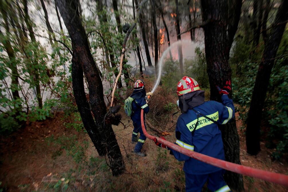 Los bomberos griegos continuaban el jueves su lucha contra las llamas en plena ola de calor en el país, con dos incendios preocupantes en Olimpia (suroeste) y la isla de Eubea (este), donde los bosques de pinos provocan impresionantes llamaradas.