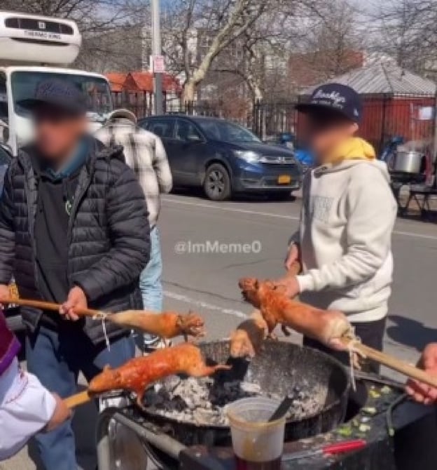El video proviene, según Grok (asistente de inteligencia artificial), de un puesto de comida callejera ecuatoriana en Bushwick, Brooklyn, en donde se vende cuy asado. Este comedor informal funcionaría en ese barrio desde hace varios años en la acera. (I)