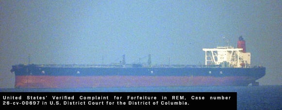 El Departamento de Justicia presentó una demanda civil ante el Tribunal de Distrito del Distrito de Columbia para decomisar el buque tanque Skipper, incautado el 10 de diciembre de 2025 en aguas internacionales, y aproximadamente 1,8 millones de barriles de petróleo que transportaba.