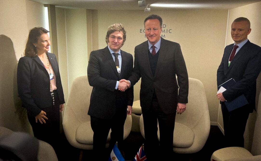 El presidente de Argentina, Javier Milei, aseguró este miércoles que no habló de las Malvinas con el ministro de Asuntos Exteriores del Reino Unido, David Cameron, con el que se reunió en el marco del Foro de Davos (Suiza), y que eso queda “para las futuras negociaciones diplomáticas”.