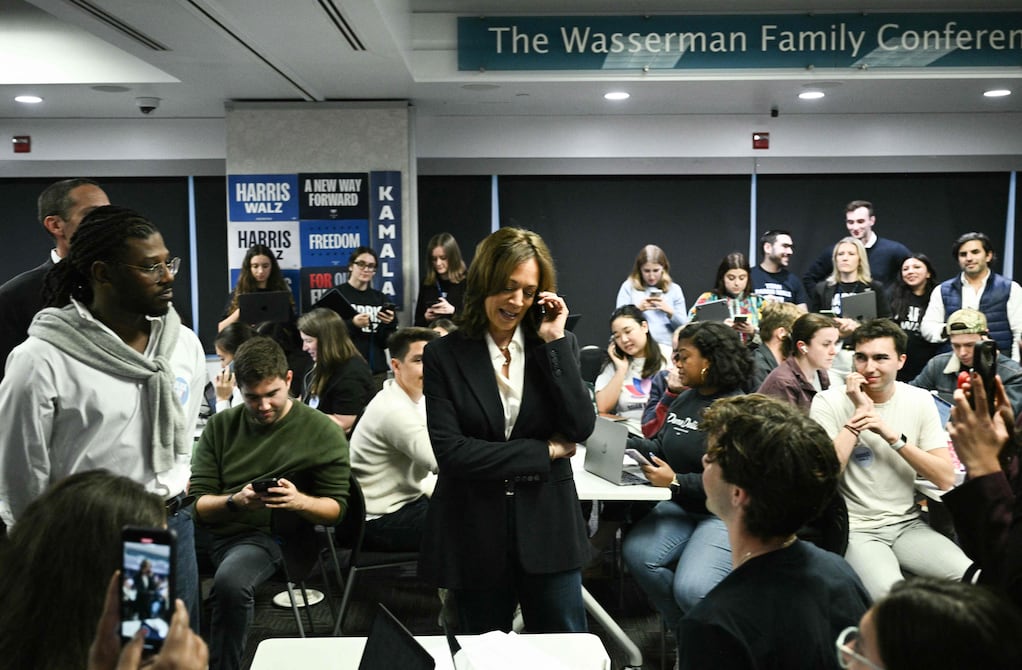 La vicepresidenta de EE.UU. y candidata demócrata a la Casa Blanca, Kamala Harris, hizo este martes una aparición sorpresa en la sede del Partido Demócrata en Washington, donde llamó por teléfono a votantes para animarles a acudir a las urnas antes del cierre de los centros de votación.