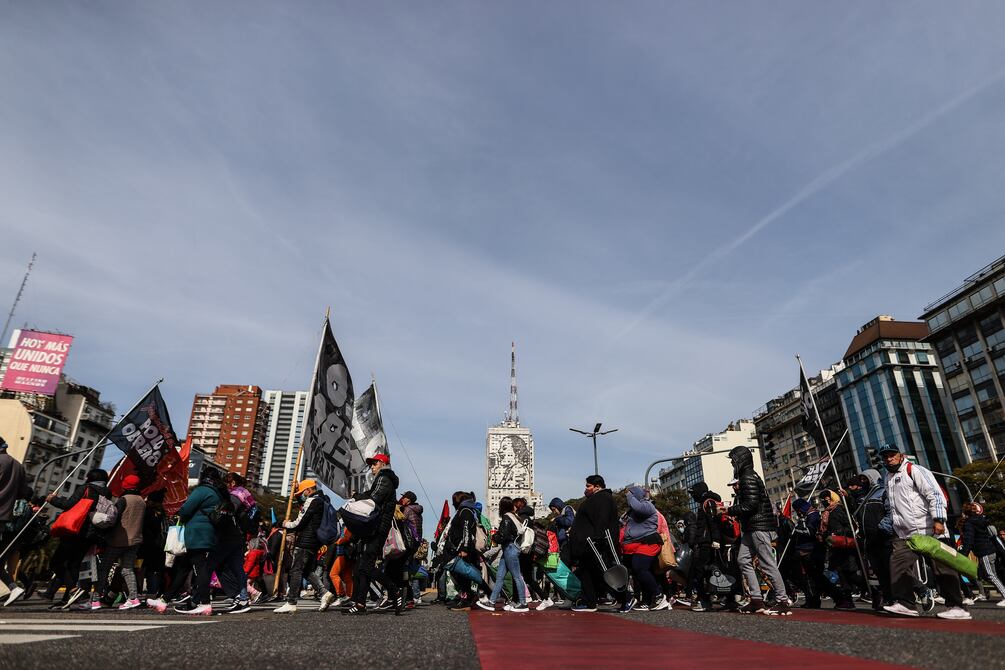 Movimientos sociales de izquierda se manifestaron este miércoles frente a la Casa Rosada, sede del Gobierno argentino en Buenos Aires, para reclamar mejoras sociales y pedir una reunión con el nuevo ministro de Economía, Sergio Massa.