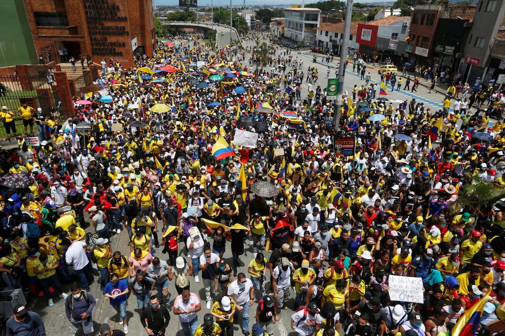 Congresistas opositores y organizaciones de la sociedad civil pidieron este sábado al presidente colombiano, Iván Duque, detener la violencia en las protestas que ocurren desde hace tres días contra el proyecto de reforma fiscal y que han dejado varios muertos en Cali (suroeste), según versiones no confirmadas.