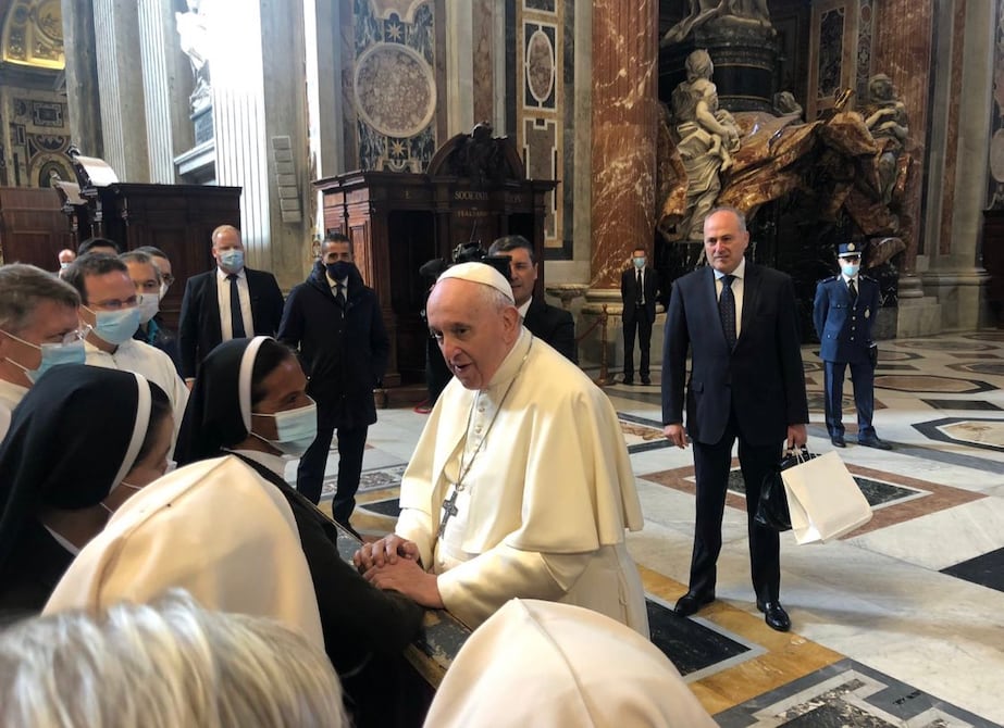 El papa Francisco saludó hoy personalmente en la basílica de San Pedro a la religiosa colombiana Gloria Cecilia Narváez, secuestrada en Mali en febrero de 2017 y liberada ayer sábado.