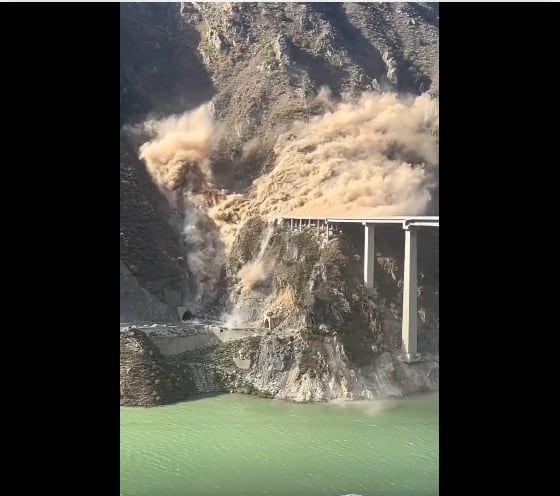 Una nube de polvo cubrió zona mientras se desplomaba parte de la estructura. De acuerdo con medios locales, este martes 11 de noviembre se empezaron a publicar videos en la que se evidenciaba el desprendimiento de la montaña y de algunos pilares.