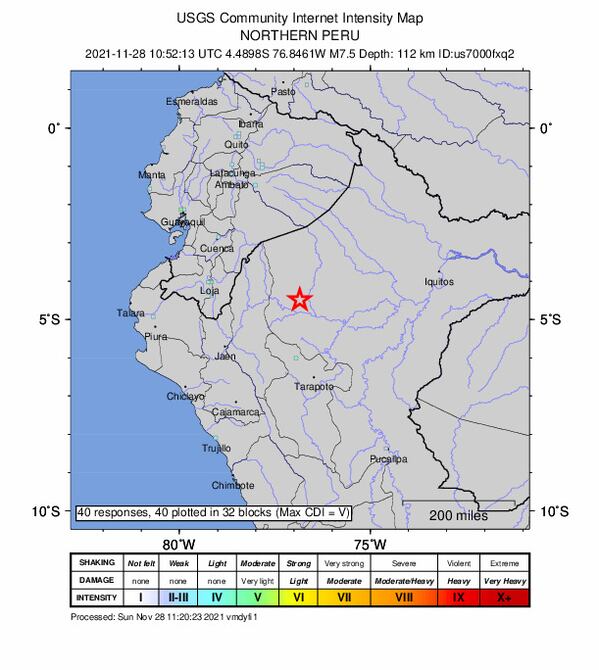 El terremoto en la zona amazónica peruana ha dejado al menos 4 heridos, 867 personas damnificadas, 75 viviendas destruidas y otros daños.