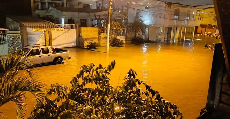 Parte de Chone quedó bajo el agua tras la fuerte lluvia. Calles de la zona urbana quedaron anegadas debido a la acumulación de agua.
