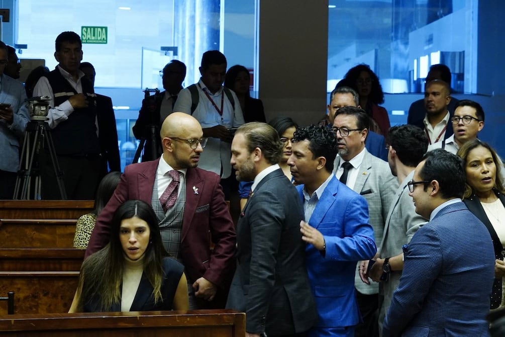 A la sesión también asistieron asambleístas de la bancada oficialista Acción Democrática Nacional (ADN) como Valentina Centeno, Andrés Castillo, Juan José Reyes, Jorge Chamba, quienes permanecieron durante unos 20 minutos en el salón José Mejía Lequerica.