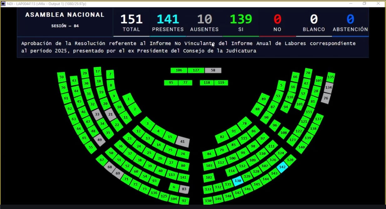 La moción de no aprobación del informe del Consejo de la Judicatura la presentó el legislador Kevin Gallardo (ADN) y obtuvo 139 votos a favor.