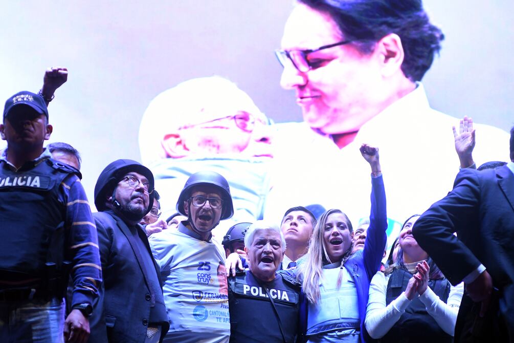 Con casco y chaleco antibalas, rodeado de más de una docena de policías que lo protegían, así apareció Christian Zurita, candidato presidencial del movimiento Construye, lista 25, en el evento de cierre de campaña, que se realizó en el norte de Quito, la noche del jueves 17 de agosto. Ahí recordó la trayectoria y propuestas de su amigo Fernando Villavicencio, quien buscaba la Presidencia de la República hasta que fue asesinado el 9 de agosto, tras salir de un mitin político.
