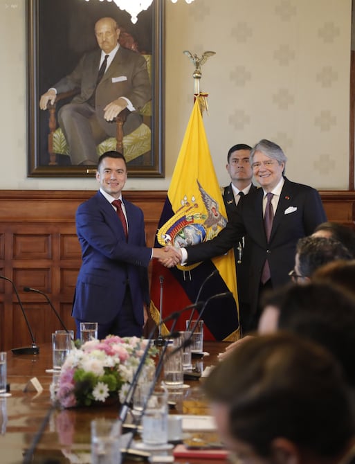 Sin ser un detalle pensado para la ocasión, la primera reunión entre el mandatario saliente, Guillermo Lasso, y el entrante, Daniel Noboa, en el Palacio de Carondelet tuvo detrás un cuadro cargado de simbolismo, el retrato de Clemente Yerovi, quien, al igual que lo hará Noboa, gobernó el país en un proceso de transición.