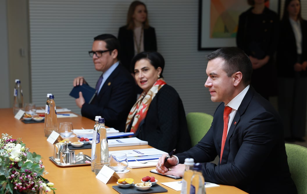Noboa y una comitiva de ministros se encuentran en una gira internacional en Bruselas (Bélgica). Ahí mantuvo reuniones con empresarios para exponer un portafolio de inversiones en materia energética, minería, hidrocarburos.