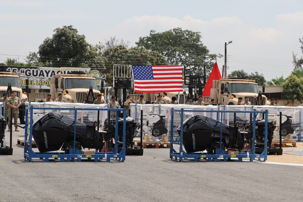 En el Fuerte Militar Huancavilca, en Guayaquil, la delegación de alto nivel de los Estados Unidos que visita Ecuador para fortalecer la cooperación en seguridad hizo la entrega a las Fuerzas Armadas de seis camiones Navistar, motores para embarcaciones usadas en operativos de seguridad, equipos tecnológicos y capacitación, todo esto valorado en $ 2,4 millones.