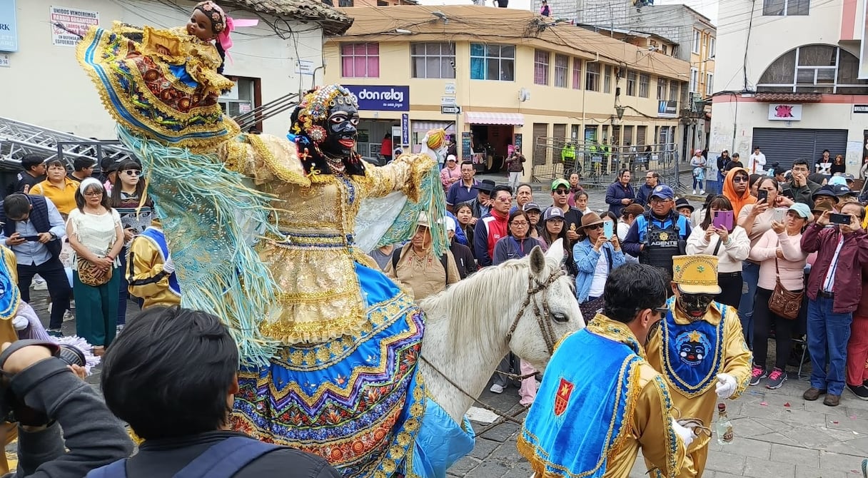 Los devotos y donantes de la Virgen de las Mercedes, conocida como la patrona del volcán Cotopaxi, realizaron este martes, 23 de septiembre, la tradicional comparsa de la Mama Negra, a pesar de las restricciones de movilidad en la provincia de Cotopaxi a causa del paro nacional en contra de la eliminación del subsidio al diésel.