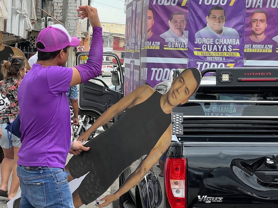 No son novedad: las figuras de cartón con la imagen del presidente-candidato Daniel Noboa aparecieron en la segunda vuelta de las elecciones anticipadas del 2023.