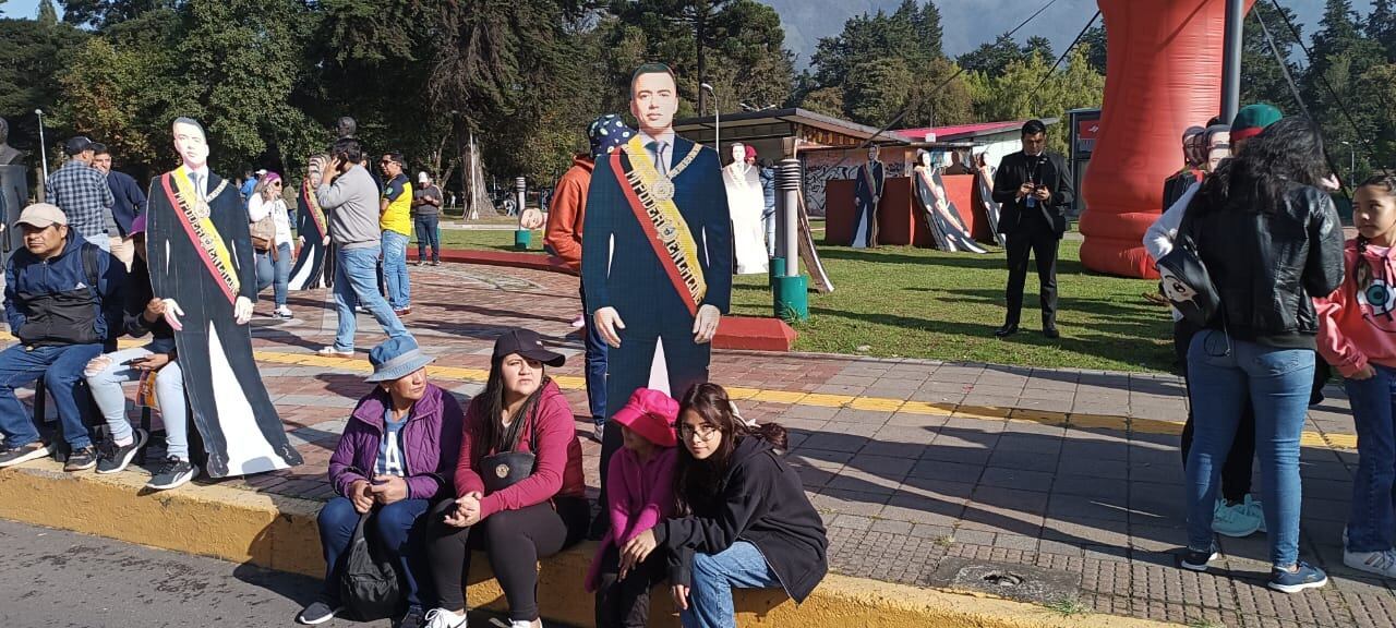 Cientos de muñecos de cartón de Daniel Noboa Azín, pantallas gigantes en los filos de la avenida 6 de Diciembre y simpatizantes traídos desde provincias son el preludio de la jornada política que se prepara para el primer Informe a la Nación del presidente Daniel Noboa Azín.
