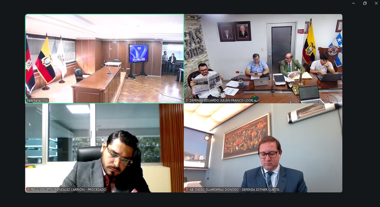 En mayoría los procesados y sus defensas asistieron a la diligencia usando la vía telemática. Desde Guayaquil estaban Gonzalez, Franco Loor, Yadira Saltos; mientras que desde México Arauz y Verduga. En Quito se hizo presente la actual consejera Nicole Bonifaz y su defensa, así como también otros abogados.